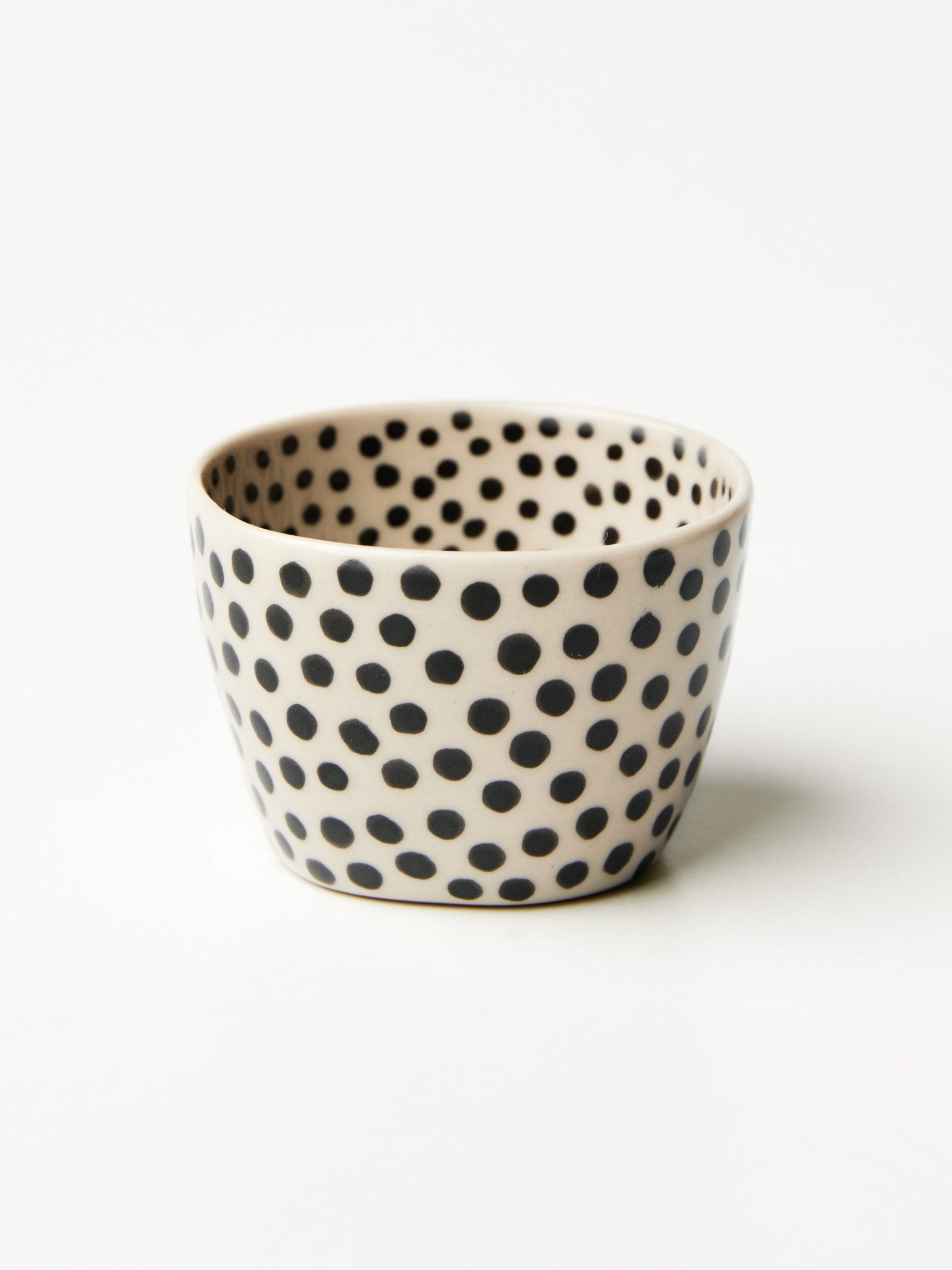 Small but perfectly formed and functional, the Chino Salt Bowl in Black Sprinkle makes a welcome addition to your dining table. Use for salt and pepper or any single serve condiment or sauce.Handmade from earthenware clay, each spot is painted by hand. Yes, by hand! Designed in Sydney and handmade in Vietnam by Jones & Co artisans. Care Instructions:Microwave and dishwasher safe.Country of Origin:Hanoi, Vietnam Dimensions:Length 6Width 6Height 4