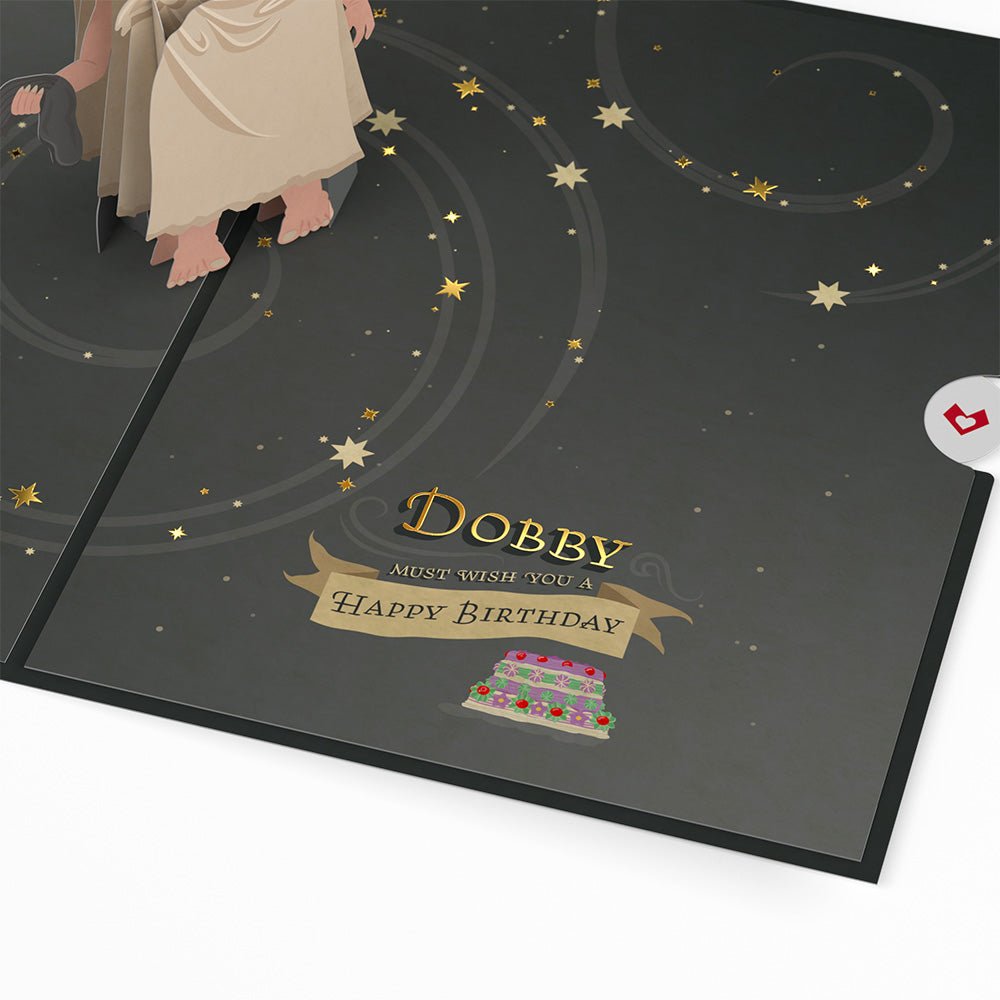 Description: Wish the Harry Potter™ fan in your life a happy birthday with a Dobby™ pop-up card. Featuring everyone’s favorite house elf, this card is perfect to send to a friend, daughter, son, or someone who deserves a little magic on their special day.